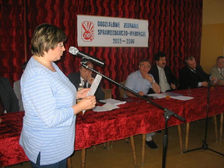 | Kol. Bożena Topczeska, która przewodniczyła Komisji uchwał i wniosków, czyta uchwałę zebrania. | |